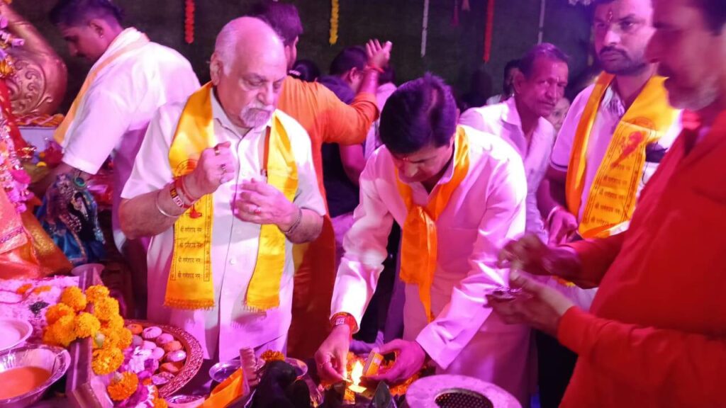 मेरठ रोड स्थित नानूपुरी में ब्रह्मलीन ज्योतिषाचार्य राज भारद्वाज की प्रेरणा से चल रहे 45 वें गणेश महोत्सव के अंतिम दिन सपा के राष्टीय सचिव राकेश शर्मा ने अपने साथियों के साथ शामिल हुए। उन्हांने मंत्रोच्चार के बीच गणेश की पूजा अर्चना के साथ खीर का भोग लगाया। युवा नेता राकेश शर्मा ने कहा कि गणेश भगवान की पूजा करने से सकरात्मक उर्जा मिलती है। गणेश जी केवल एक देवता नहीं, बल्कि जीवन दर्शन है। वो हमे सिखाते है कि कैसे बाधाओं को दूर कर विनम्रता से आगे बढा जा सकता है। चाहे कोई शुभ कार्य या फिर नए काम की शुरूआत सबसे पहले भगवान गणेश का ही स्मरण किया जाता है। भगवान गणेश हमारे अंदर छिपी हुई शक्तियों को जगाने में मदद करते है। उनकी कृपा से हम सब उंचाइयां को छू सकते है। सोमवार को पूर्ण आहुति के साथ भंडारे का आयोजन किया गया। तीसरे पहले धूमधाम से गणेश विसर्जन यात्रा निकाली गई। शाम के समय खतौली गंग नहर पर धार्मिक रीति रिवाज से भगवान गणेश की मूर्ति का विसर्जन किया गया।