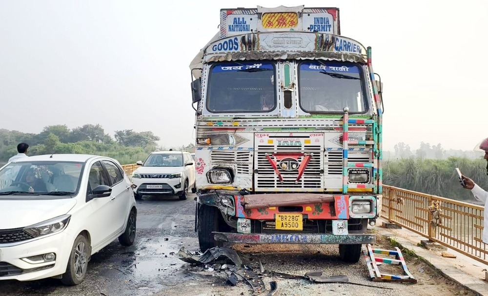 बिजनौर के इंद्रलोक कालोनी निवासी मयंक पुत्र शिवकुमार सोमवार की सुबह अपनी कार में सवार होकर दिल्ली से वापस लौट रहे थे। कार में मंयक के साथ उसकी पत्नी रिया, भाई लक्ष्य और साली प्रियंका सवार थी। लक्ष्य कार चला रहा था। रामराज थानाक्षेत्र की देवल गंगनहर पुल के निकट पहुंची। अचानक लक्ष्य को नींद की झपकी आ गई। कार पुल की रेलिंग से टकराकर बिजनौर से आ रहे 14 टायरा ट्रक से टकरा गई। टक्कर इतनी जबरदस्त थी कि कार के परखच्चे उड गए। हादसे में चालक लक्ष्य की मौके पर ही मौत हो गई, जबकि मयंक, रिया और प्रियंका बुरी तरह घायल हो गई। घायलों को बाहर निकालकर उपचार के लिए बिजनौर के जिला अस्पताल भिजवाया। जहां पर चिकित्सकों ने प्रियंका को मृत घोषित कर दिया। जबकि मयंक व रिया को भर्ती कर लिया। घायल मयंक व रिया की हालत भी चिंताजनक बनी हुई है। एसपी देहात आदित्य बंसल ने बताया कि चालक को हिरासत में ले लिया गया है।