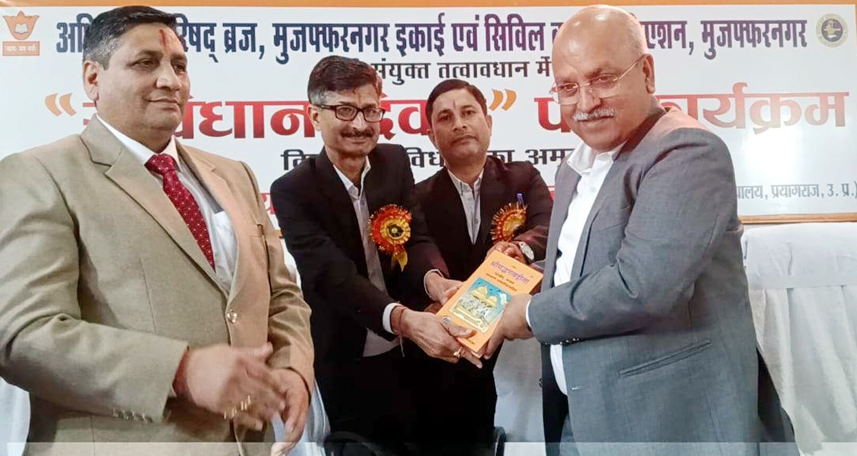 मुजफ्फरनगर। इलाहाबाद उच्च न्यायालय के न्यायमूर्ति कृष्ण पहल ने कहा कि संविधान राष्ट्रीय जीवन की आत्मा है। उसी के बदौलत हम सब स्वतंत्र है। इस दौरान उन्होंने सिविल बार संघ परिसर में महिला अधिवक्ता के काॅमन कक्ष का फीता काटकर उद्घाटन किया। न्यायमूर्ति कृष्ण पहल शनिवार को अधिवक्ता परिषद ब्रज द्वारा सिविल बार एसोसिएशन के संयुक्त तत्वाधान में संविधान दिवस के अवसर पर संविधान का अमृत काल विषय पर आयोजित गोष्ठी में मुख्य अतिथि के रूप में बोल रहे थे। इससे पहले न्यायमूर्ति कृष्ण पहल का स्वागत किया गया। न्यायमूर्ति कृष्ण पहल ने दीप प्रज्जवलित कर गोष्ठी का शुभारंभ किया। मोटर दुर्घटना दावा अधिकरण की चेयरमैन आदेश नैन, अधिवक्ता परिषद के अध्यक्ष विजय कमार त्यागी, महामंत्री सलेक चंद, सुनील मित्तल, राज सिंह रावत, डीजीसी सिविल गौरव गोयल, अरुण शर्मा, निर्मल मित्तल, ठाकुर भूपेंद्र सिंह, बालकृष्ण शर्मा, विष्णु गर्ग कोषाध्यक्ष, बार संघ के सचिव चंद्रवीर सिंह निर्वाल, सुरेन्द्र मलिक, सतेन्द्र सिंह, कुलदीप पंडित, प्रमोद कुमार, सुभाष चंद गुप्ता आदि इस दौरान मौजूद रहे। गोष्ठी का संचालन दीपाशा गौतम और ललिता रानी ने संयुक्त रूप से किया।