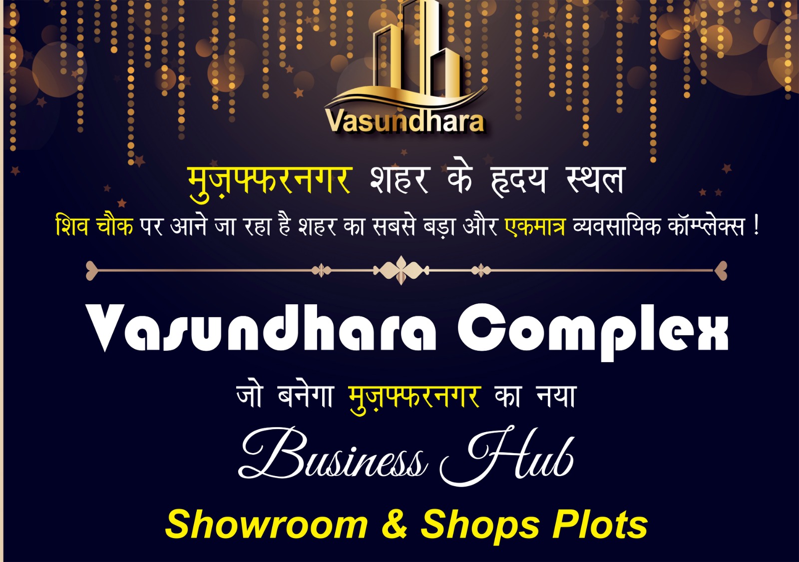 मुजफ्फरनगर। महानगरों की तर्ज पर मुजफ्फरनगर शहर की सूरत बदलने के लिए वसुधंरा बिल्डर और डवलपर्स ने नई मुहिम शुरू की है। शहर के नावल्टी चैक पर आबादी के बीच बनने वाले 125 शो रूम व्यवसायिक काम्पलैक्स की सोमवार को नींव रख दी है। अत्याधुनिक सुविधा वाला यह काम्पलैक्स छह से सात माह में बनकर तैयार होगा। डायरेक्टर अमित वसुंधरा का दावा है कि शहर के कारोबारियों ने इस काम्पलैक्स में व्यापक दिलचस्पी दिखाई है। बनने से पहले 50 प्रतिशत बुकिंग हो गई है। मुजफ्फरनगर, मेरठ और देहरादून में आवासीय सुविधा के क्षेत्र में कई आलीशान काॅलोनी विकसित करने वाले वसुंधरा बिल्डर और डवलपर्स मुजफ्फनगर शहर की सूरत बदलने के लिए नया व्यवसायिक प्लान लेकर आया है। इसके तहत शहर के शिव चैक के पास व्यवसायिक काम्पलैक्स को विकसित करने की तैयारी है। अत्याधुनिक सुविधा वाले इस बिजनेस हब में ज्वैलर्स, गारमेंटस, फुट वियर, काॅस्मेटिक, इलैक्ट्रोनिक्स, जनरल स्टोर के शोरूम के साथ रेस्टारेंट को प्रस्तावित किया गया है। इस व्यवसायिक काॅम्पलैक्स की सोमवार को नींव रख दी गई है। काॅम्लैक्स परिसर में आज कारोबारियों का जमावड़ा रहा। बडी संख्या में शोरूम के प्लाट खरीदने के लिए पूंजी निवेश किया है, जबकि अभी कुछ लोग सिर्फ जानकारी हासिल करने के लिए आए थे। डायरेक्टर अमित वसधुरा ने बताया कि काॅप्लैक्स में 125 शोरूम तैयार करने का प्लान है। आबादी के बीच विकसित हो रहे वसुधरा काम्पलैक्स में व्यवसायिक बेहद रूचि दिखा रहे है। अगले छह से सात माह में यह काॅम्पलैक्स बनकर तैयार होगा, जो शहर के दिशा और दशा सुधारने में मील का पत्थर साबित होगा।