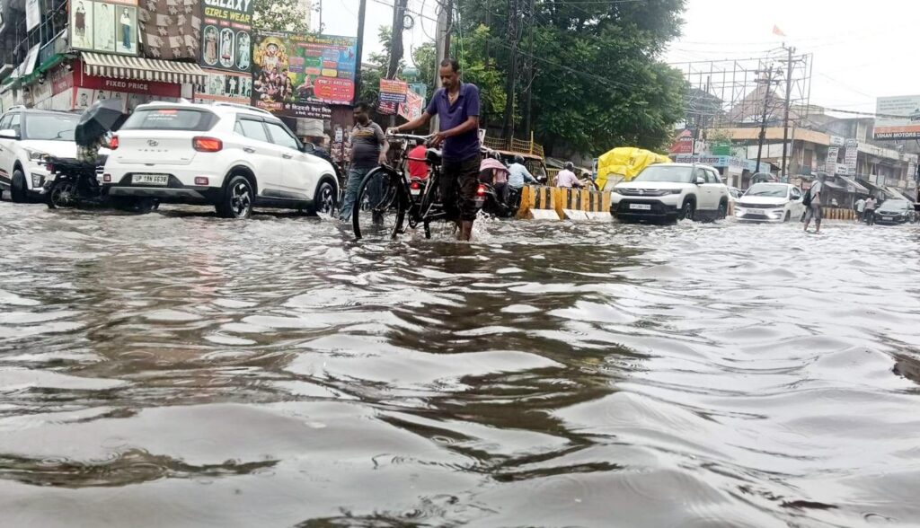 मुजफ्फरनगर। कुछ घंटे की बारिश ने शहर की गलियों और मुख्य सड़क को जलमग्न कर दिया। बाजारों में पानी भरने से व्यापारियों को लाखों का नुकसान हुआ, जबकि पानी में फंसकर अनगिनत वाहन खराब भी हो गये। चारों तरफ जल ही जल का नजारा पहली बार नहीं दिखा है। हर बार जलभराव होता है, लेकिन जनता के हितों और विकास का दावा करने वाली नगर पालिका ऐसा कोई प्लाॅन जमीन पर नहीं उतार पा रही है, जिससे आम लोगों को जलभराव से होने वाली दिक्कतों से निजात मिल सके। गुरुवार देर रात से शुरू हुई झमाझम मूसलाधार बारिश ने शुक्रवार पूरे जिले में हाहाकार मचा दिया। शहर से लेकर कस्बों और गांवों तक कोई ऐसा इलाका नहीं बचा, जहां जलभराव की समस्या ने लोगों की मुश्किलें न बढ़ाई हो।लगातार हुई बरसात से शहर के निचले इलाकों का हाल बेहाल हो गया। शिव चैक, प्रकाश चैक, मीनाक्षी चैक, महावीर चैक सहित अन्य प्रमुख स्थानों पर कई-कई फुट पानी जमा हो गया। इस दौरान दुकानों और घरों में घुसे पानी ने लाखों रुपये का सामान बर्बाद कर दिया। लोग रात भर पानी निकालने में जूझते रहे, मगर जल निकासी की समुचित व्यवस्था न होने के कारण राहत नहीं मिल पाई। जलभराव के चलते शहर के कई मुख्य चैराहों पर घंटों तक यातायात ठप रहा। प्रकाश चैक, मीनाक्षी चैक और महावीर चैक पर वाहनों की लंबी कतारें लग गईं। ट्रैफिक पुलिस को जाम खुलवाने में खासी मशक्कत करनी पड़ी, मगर तब भी स्थिति सामान्य नहीं हो सकी।