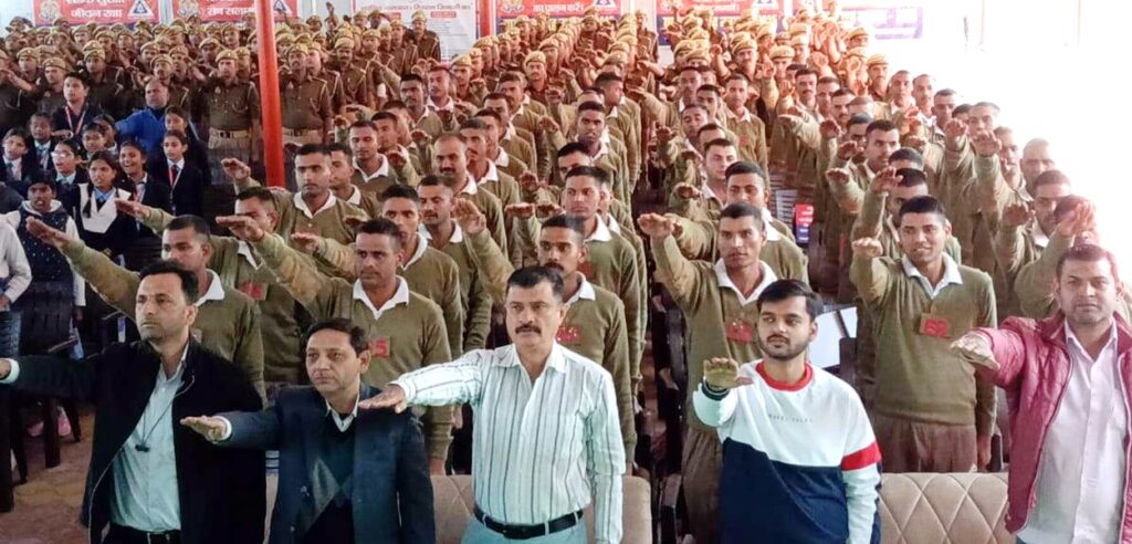 वरिष्ठ पुलिस अधीक्षक संजय कुमार वर्मा द्वारा रिजर्व पुलिस लाइन स्थित बहुउद्देश्यीय हाॅल में आयोजित जागरूकता कार्यक्रम में विभिन्न स्कूलों से आए छात्र-छात्राओं, प्रतिष्ठित नागरिकों एवं आरटीसी आरक्षियों को संबोधित किया, जिसका उद्देश्य सड़क सुरक्षा को जीवन का अभिन्न हिस्सा बनाना तथा युवाओं को यातायात नियमों के प्रति जागरूक करना रहा। एसएसपी ने कहा कि यातायात माह का मूल उद्देश्य सड़क सुरक्षा के प्रति जनजागरूकता बढ़ाना, सड़क दुर्घटनाओं में कमी लाना तथा नागरिकों में यातायात नियमों के महत्व को स्थापित करना है। साथ ही माननीय मुख्यमंत्री योगी आदित्यनाथ जी द्वारा सड़क दुर्घटनाओं में 50 प्रतिशत तक कमी लाने के जो लक्ष्य निर्धारित किए गए हैं। उनकी प्राप्ति की दिशा में मुजफ्फरनगर उल्लेखनीय प्रगति करते हुए लक्ष्य के काफी निकट पहुंच चुका है। यातायात नियमों का पालन स्वयं के साथ-साथ दूसरों की जान बचाता है। हमारा लक्ष्य दुर्घटना.मुक्त मुजफ्फरनगर बनाना है। पुलिस का उद्देश्य केवल चालान करना नहीं, बल्कि जीवन बचाना है, जो हमारी सर्वोच्च प्राथमिकता है। वरिष्ठ पुलिस अधीक्षक ने कहा कि सभी लोग स्वयं यातायात नियमों का पालन करेंए अपने परिवारजन, पड़ोसियों एवं मित्रों को भी नियमों के पालन हेतु प्रेरित करें। गुड़ समेरिटन नीति के अंतर्गत दुर्घटनाग्रस्त व्यक्तियों को तुरंत अस्पताल पहुंचाने में सहयोग करें। इसके साथ ही लघु फिल्म प्रदर्शित कर यह समझाया गया कि छोटी सी लापरवाही कैसे बड़ी दुर्घटना का कारण बन सकती है। हेलमेट, सीट बेल्ट कितने आवश्यक है तथा ट्रिपल राइडिंग, ओवर स्पीडिंग व मोबाइल पर बात करते हुए वाहन चलाने के दुष्परिणामों को प्रभावी तरीके से दर्शाया गया। दुर्घटनाएं रोकने के लिए प्रभावी कार्यवाही की गयी है। इस दौरान पुलिस अधीक्षक नगर सत्यनारायण प्रजापत, पुलिस अधीक्षक यातायात अतुल कुमार चैबे, पुलिस अधीक्षक अपराध इंदु सि(ार्थ आदि प्रमुख रूप से उपस्थित थी।